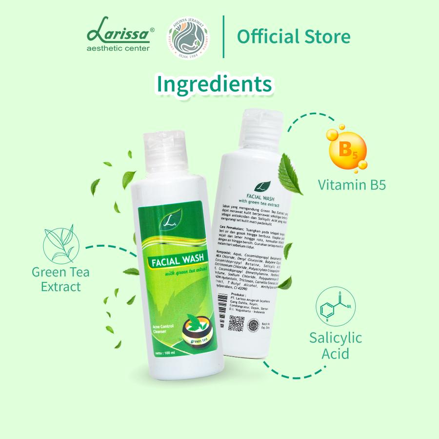 Facial Wash Acne Green Tea Extract Larissa / Sabun Cuci Muka Untuk Berminyak dan Berjerawat Wajah Cleanser - Facial Wash Green Tea Extract