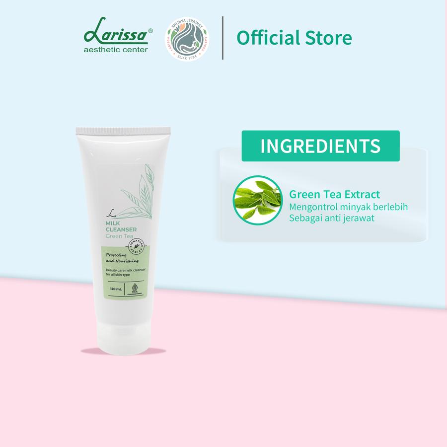 Milk Cleanser Green Tea berguna untuk membantu mengangkat kotoran dan sisa tata rias pada wajah.